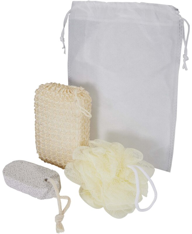 Dopřejte si chvíle relaxace s touto praktickou sadou pro každodenní péči o tělo. Sada obsahuje tři nepostradatelné koupelnové pomůcky: kouli do koupele (lufu) pro jemný peeling, pemzu na odstranění ztvrdlé kůže a houbu ze sisalového konopí pro důkladné čištění pokožky.