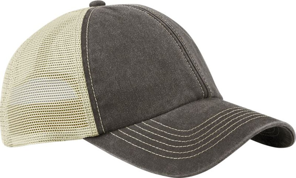 Ohnutý kšilt, nevyztužené panely, 6 ozdobných švů na kšiltu, střední profil kšiltovky, patentka, štítek TearAway, pouze čistit houbičkou Kšilt a přední panel: 100% těžká kartáčovaná bavlna, boční strany a zadní strana: 100% recyklovaná polyesterová síťovina
