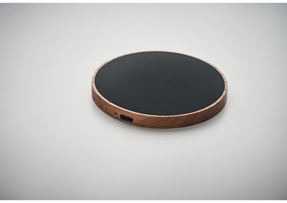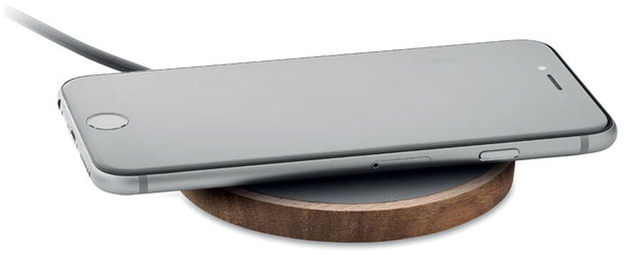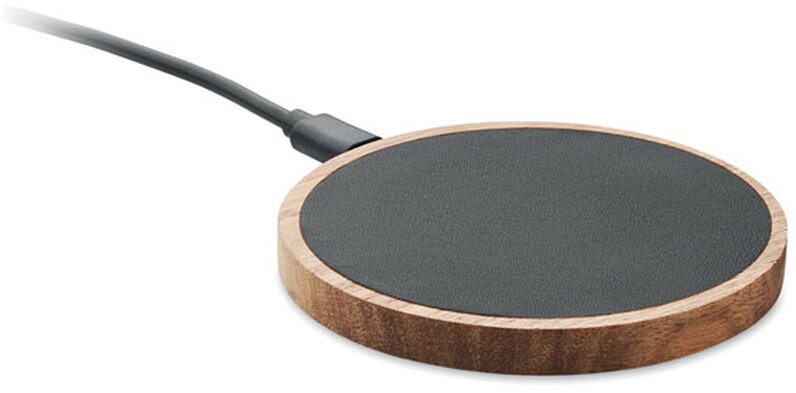 Bezdrátová nabíječka z akáciového dřeva a recyklovaného PU. Výstup: DC 9V/1,67A (15W). Kompatibilní se všemi zařízeními podporujícími QI, jako jsou nejnovější Androidy, iPhone® 12, X a novější.