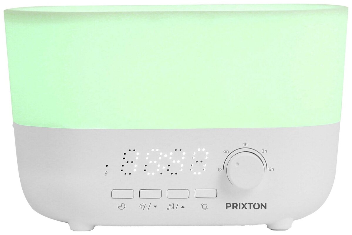 Aroma difuzér 4v1 Prixton Connected kombinuje zvlhčovač, 12W Bluetooth® reproduktor, hodiny a budík v jednom zařízení, ideální pro firemní potisk. Nádrž 360ml s flexibilními režimy (nepřetržitý nebo časované 1/3/6 hodin) a automatickým vypnutím. Reproduktor umožňuje streamování hudby přímo z vašich zařízení. Adaptér 100–240V součástí.