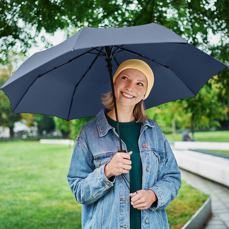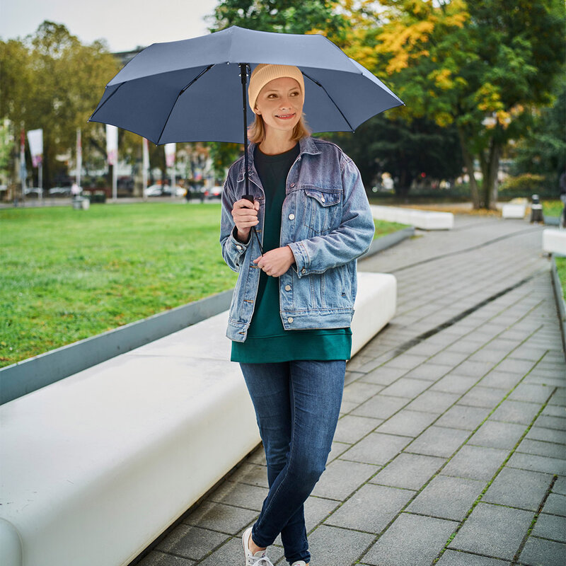 Automatický deštník s pohodlnou automatickou funkcí pro rychlé otevírání, vysoce kvalitní systém větruodolný pro maximální flexibilitu rámu ve větrných podmínkách, pohodlná Soft-Feel rukojeť s integrovaným tlačítkem, elastické poutko na nošení.