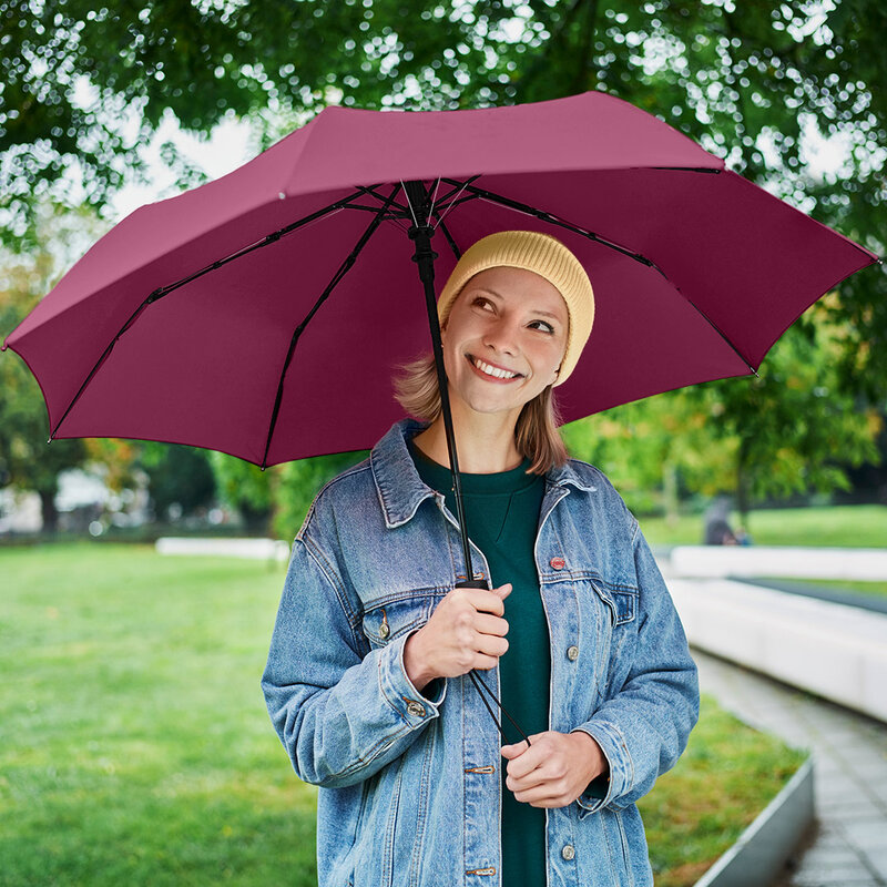 Automatický deštník s pohodlnou automatickou funkcí pro rychlé otevírání, vysoce kvalitní systém větruodolný pro maximální flexibilitu rámu ve větrných podmínkách, pohodlná Soft-Feel rukojeť s integrovaným tlačítkem, elastické poutko na nošení.