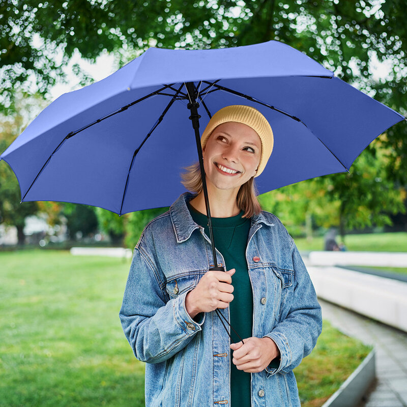 Automatický deštník s pohodlnou automatickou funkcí pro rychlé otevírání, vysoce kvalitní systém větruodolný pro maximální flexibilitu rámu ve větrných podmínkách, pohodlná Soft-Feel rukojeť s integrovaným tlačítkem, elastické poutko na nošení.