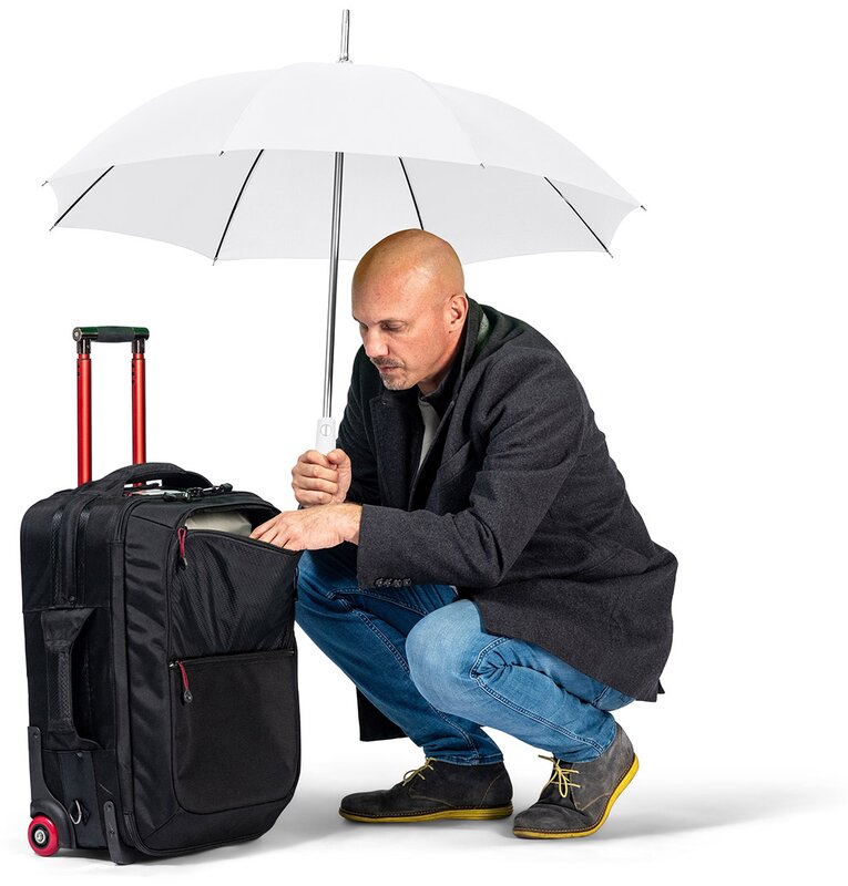 Pohodlná automatická funkce pro rychlé otevírání, vysoce kvalitní systém větruodolný pro maximální flexibilitu rámu v bouřlivých podmínkách, flexibilní sklolaminátová žebra, lehký, ale pevný hliníkový rám, atraktivní rukojeť Soft-Touch se stříbrným tlačítkem a možnost reklamního štítku. K dispozici také jako mini deštník (art. 5565, 5460) a golfový deštník (art. 7580).