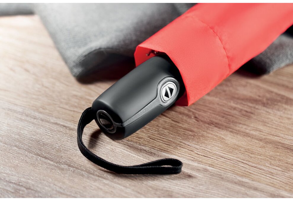 Tento luxusní deštník s automatickým zavíráním a velikostí 21 palců je vyrobený ze 190T materiálu. Má černou kovovou konsktukci, černé ABS pogumované držadlo a 3 skládací sekce. Dodáváme včetně ladícího pouzdra.