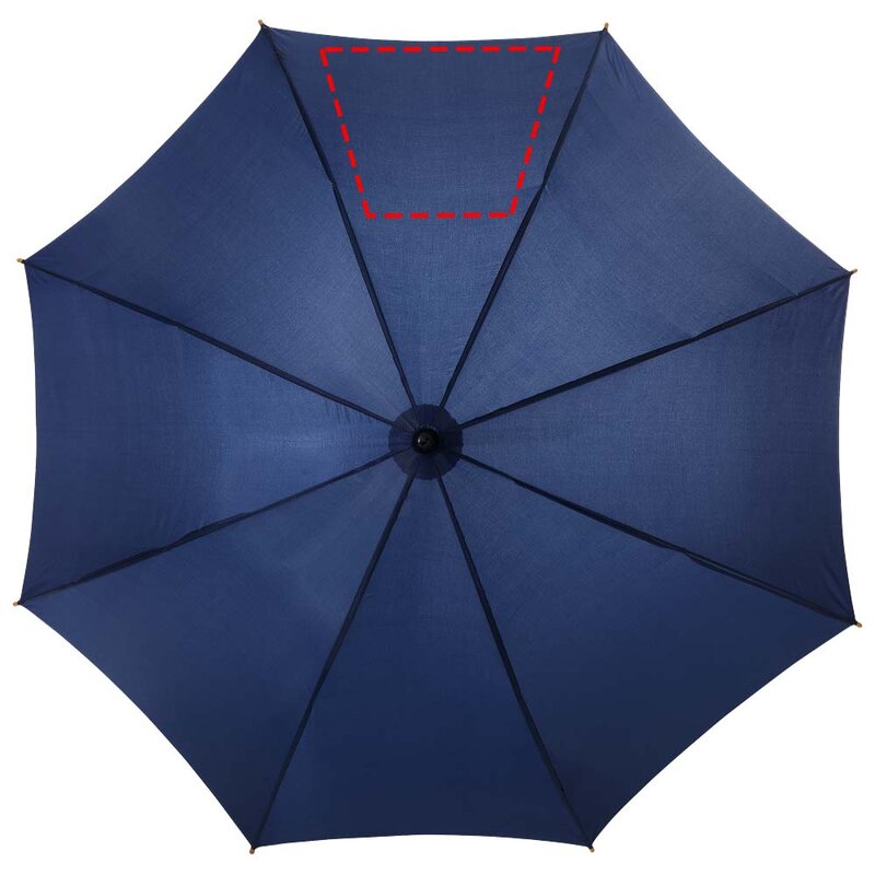 Automatický klasický deštník 23" s dřevěným kopím, dřevěnou rukojetí a kovovými žebry. Polyester.
