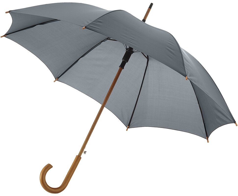 Automatický klasický deštník 23" s dřevěným kopím, dřevěnou rukojetí a kovovými žebry. Polyester.