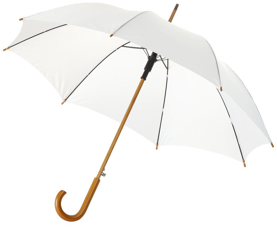 Automatický klasický deštník 23" s dřevěným kopím, dřevěnou rukojetí a kovovými žebry. Polyester.