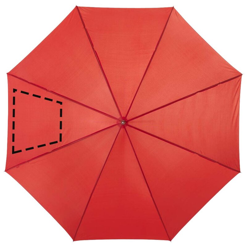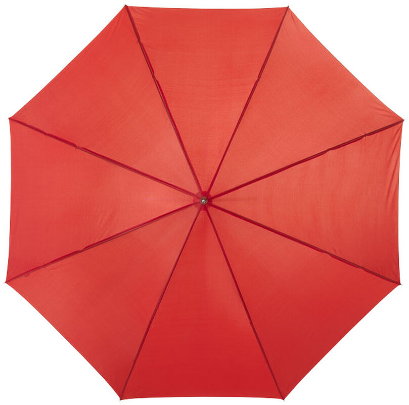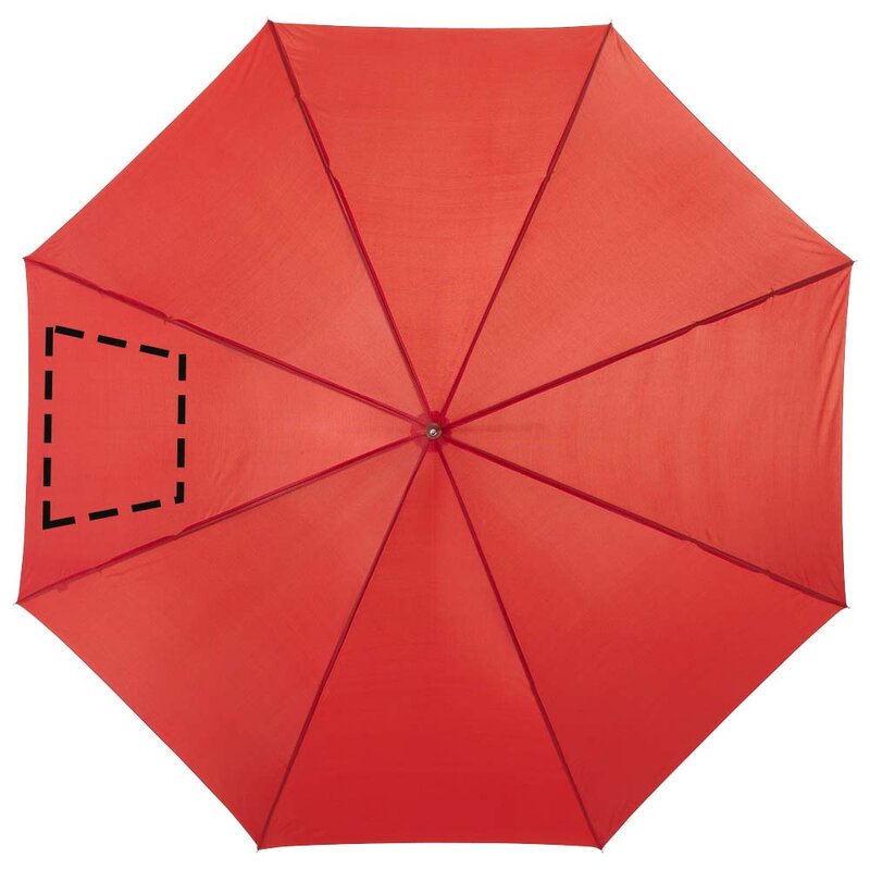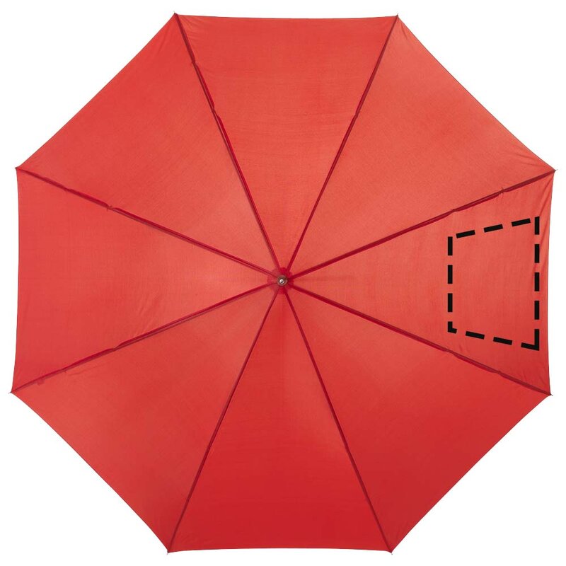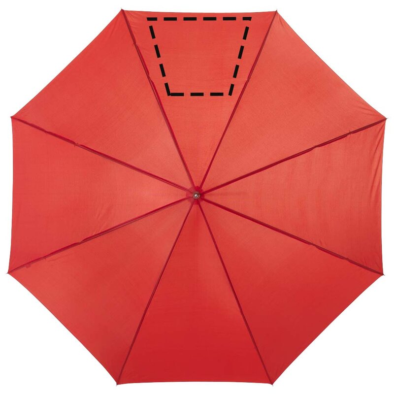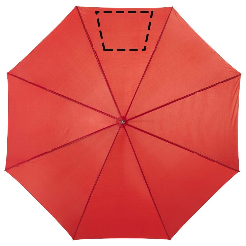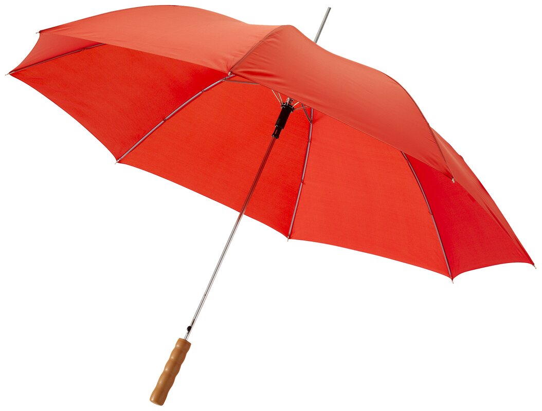 Automatický deštník 23". Deštník 23" s kovovým kopím, kovovými žebry a dřevěnou rukojetí. Polyester.