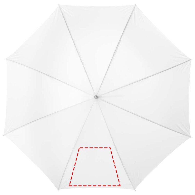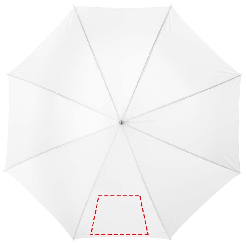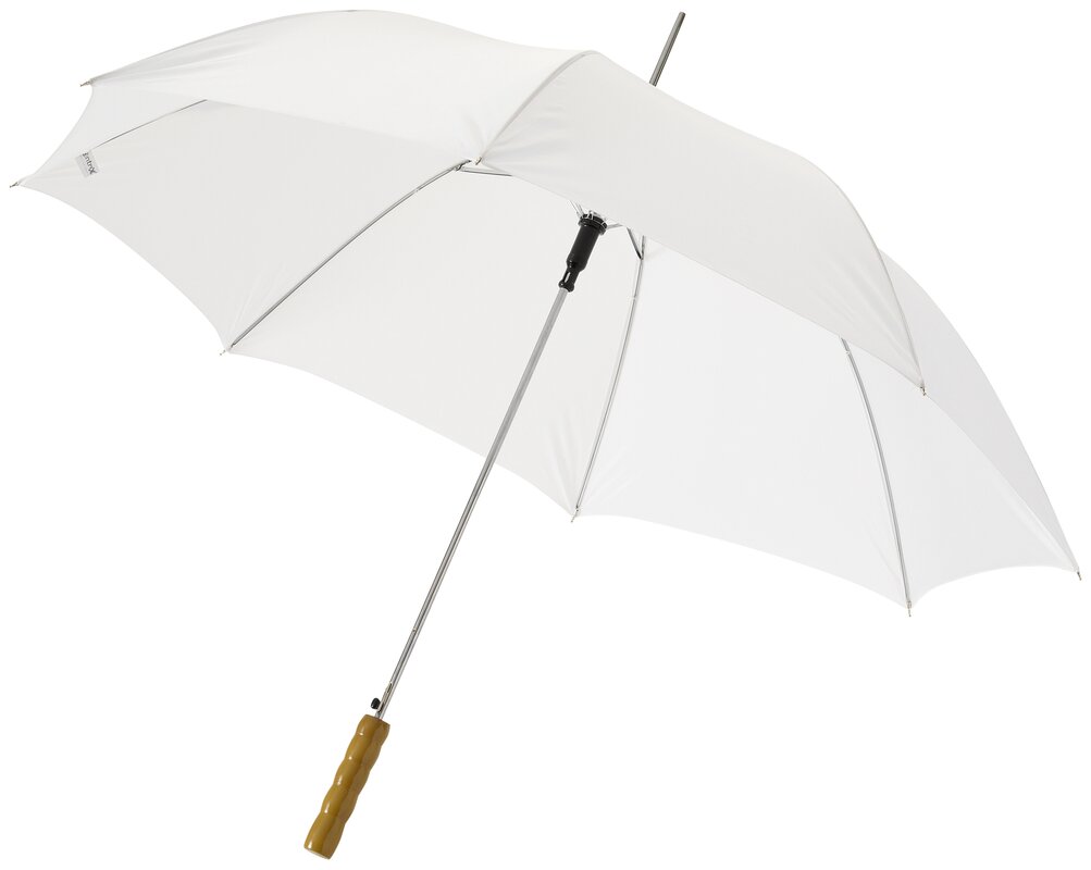 Automatický deštník 23". Deštník 23" s kovovým kopím, kovovými žebry a dřevěnou rukojetí. Polyester.