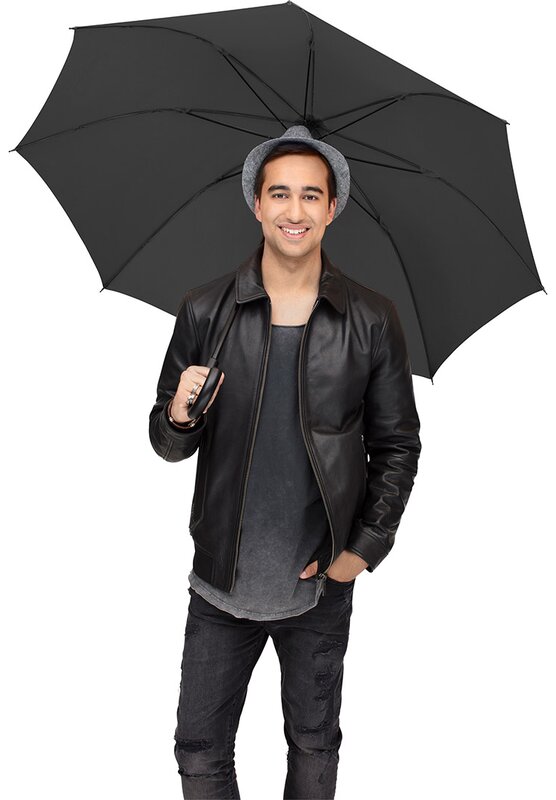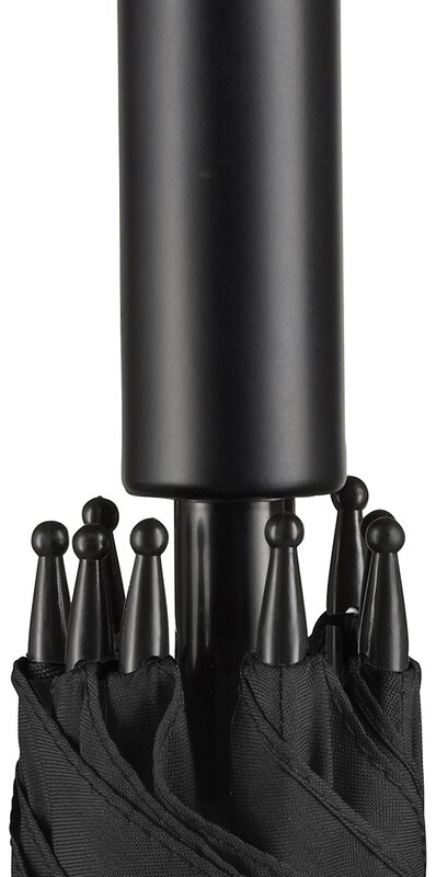Pohodlná automatická funkce pro rychlé otevírání, Windproof systém pro vyšší flexibilitu a stabilitu ve větrných podmínkách, flexibilní sklolaminátová žebra, matná černá plastová ohnutá rukojeť, vyšší ochrana proti korozi díky pozinkované ocelové hřídeli. K dispozici také jako běžný deštník (art. 1104).