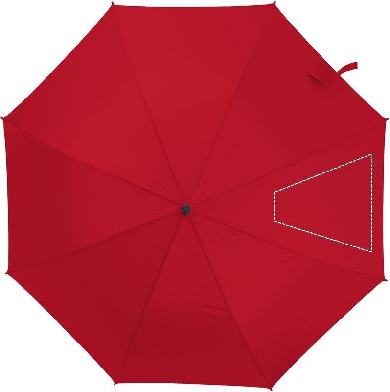 27 palcový automatický deštník SWANSEA vyrobený z hedvábného PE s EVA rukojetí. Tělo deštníky tvoří černý kovový rám a plastové černé konečky.