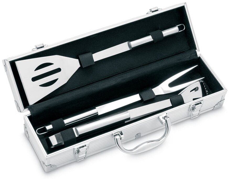 Barbecue sada v hliníkovém kufříku se 3 kusy příslušenství z nerezové oceli.