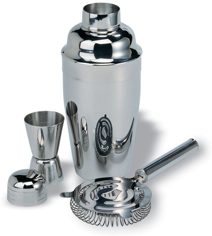 Sada na koktejl obsahuje šejkr (500 ml), odměrku a sítko.