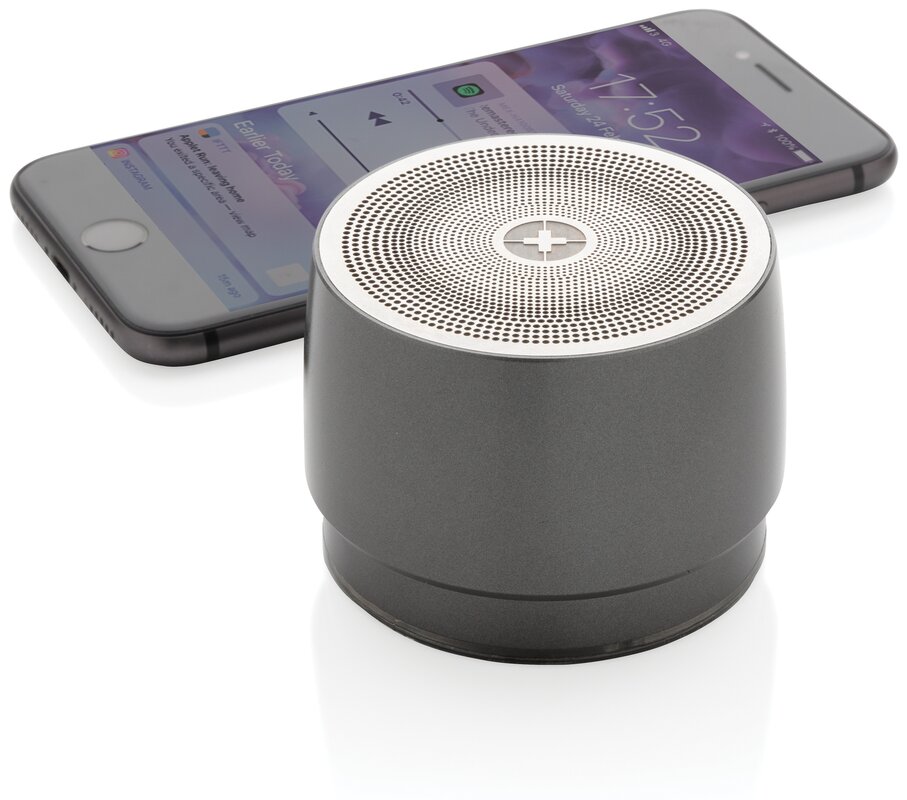 Kompaktní 5W reproduktor s překvapivě čistým zvukem s plným rozsahem. Zabudovaný subwoofer ve spodní části pro extra zvýraznění basů. Vyroben z kvalitní nerezové oceli dodávající masivní vzhled. 650 mAh baterie umožňuje přehrávání hudby po dobu až 5 hodin na jedno nabití. BT 5.0 pro hladké bezdrátové připojení na vzdálenost až 10 metrů. Včetně micro USB nabíjecího kabelu z TPE (PVC free).