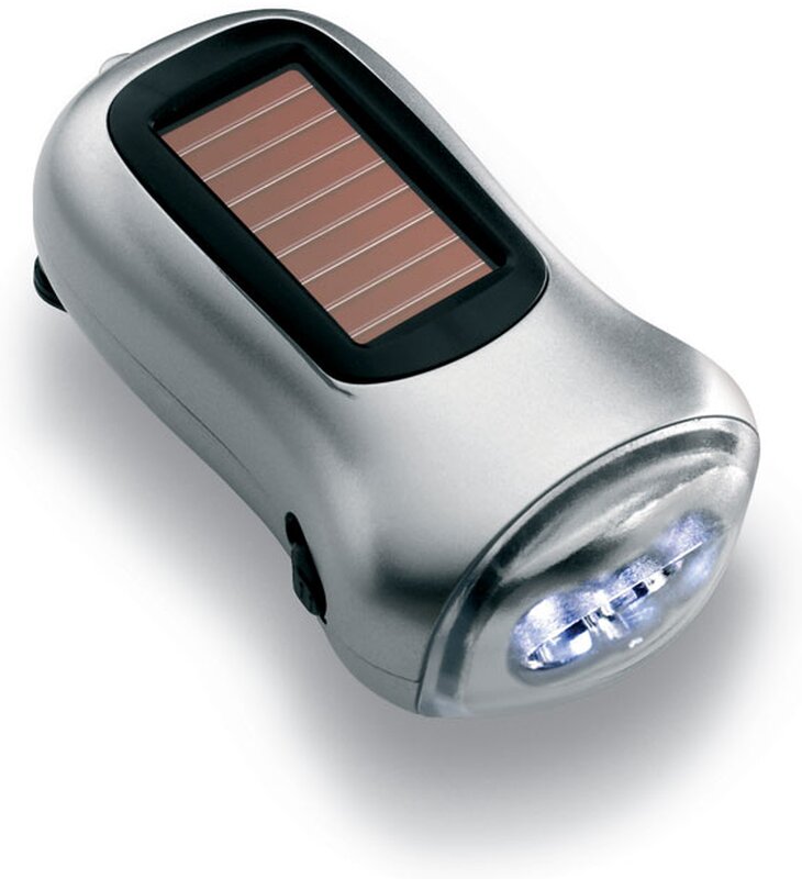 Bezbaterková baterka dobíjená slunečními paprsky nebo pomocí dynama.
