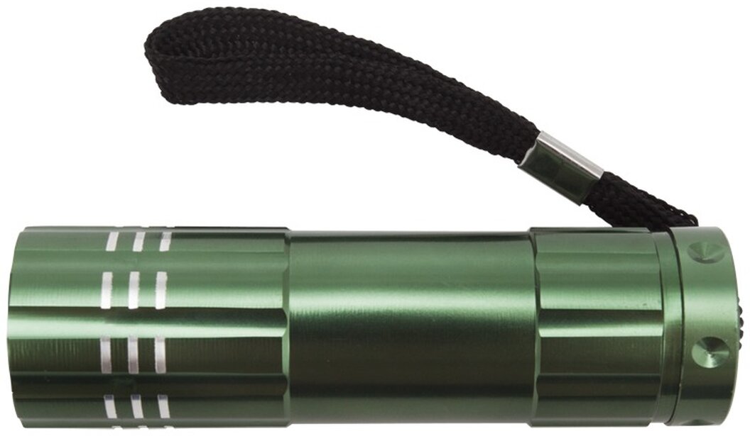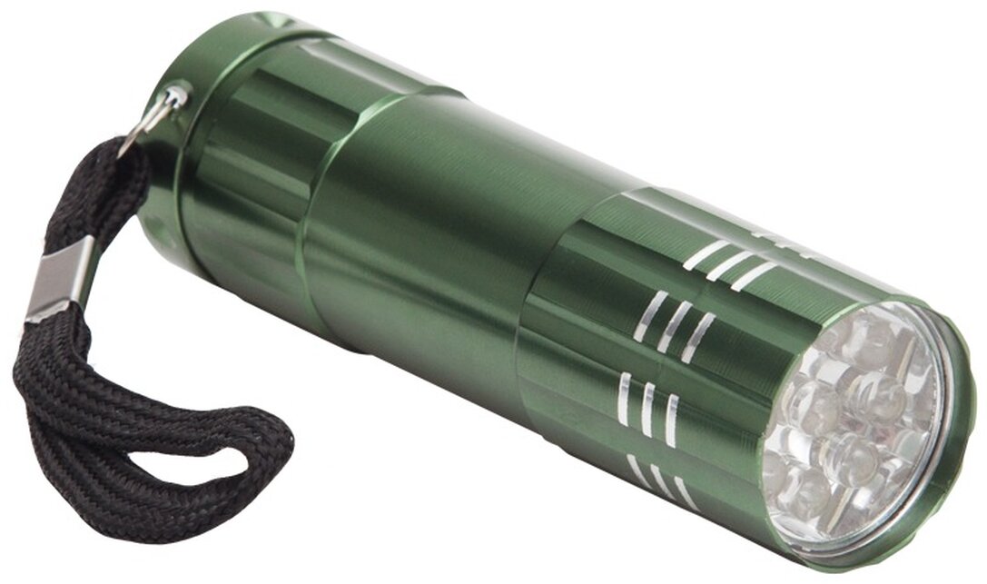 LED svítilna z hliníku s 9 LED. 3 AAA baterie v ceně.