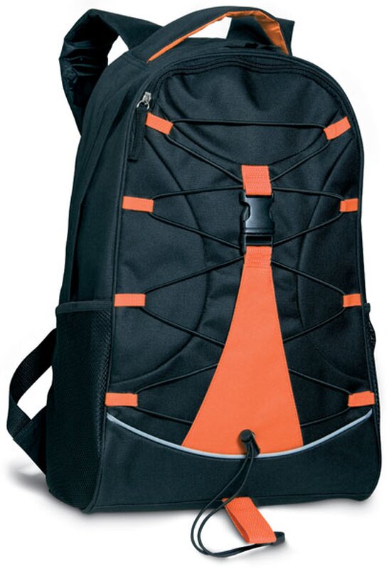 Černý batoh v několika barevným kombinacích se síťovanými kapsami. Materiál 600D polyester.