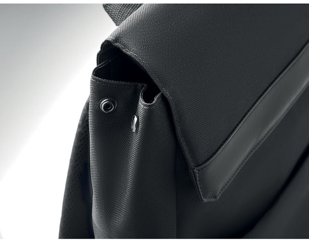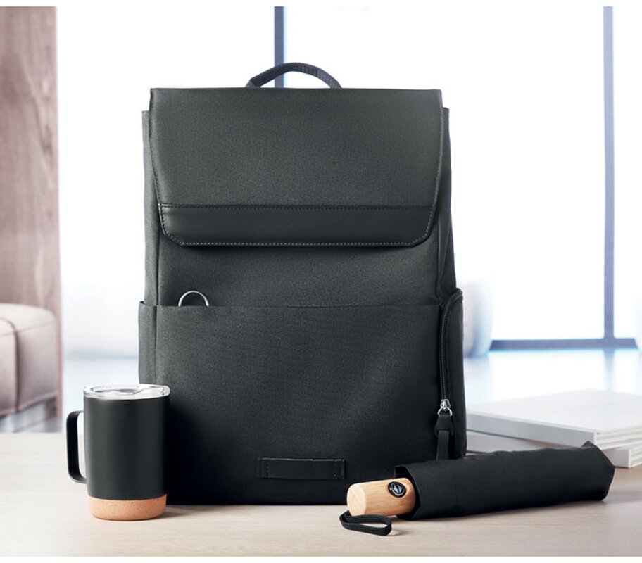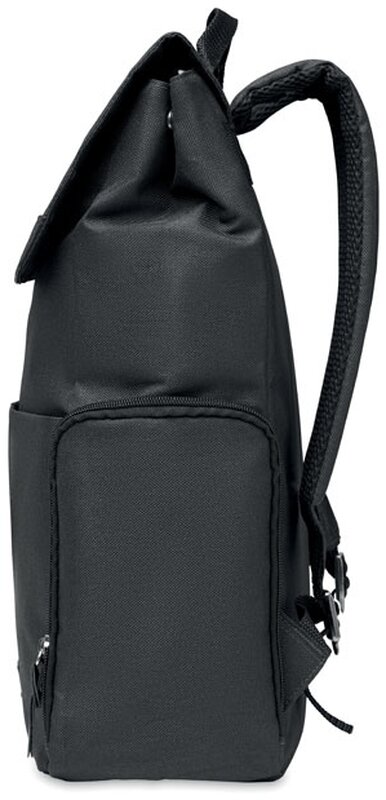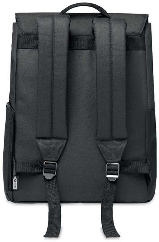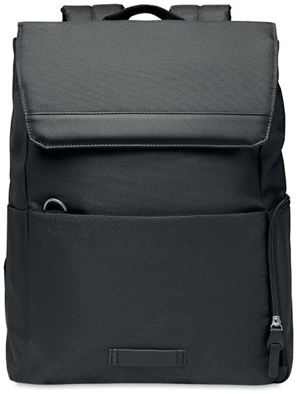 Dvoutónový batoh na 15 notebook z materiálu 600D RPET s magnetickým zapínáním. Polstrovaná přihrádka na notebook, přední kapsy na zip a 2 boční kapsy.