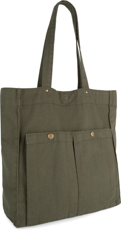 Bavlněná taška přes rameno se sepraným vzhledem a certifikovanou veganskou výrobou, ideální pro firemní potisk a výšivku. Vyrobena ze 100% bavlny (310g/m²), nabízí stabilní dno, magnetické zapínání a dvě přední kapsy s patentkou. Velká plocha na tašce poskytuje dostatek prostoru pro umístění vašeho loga.