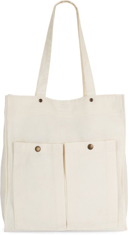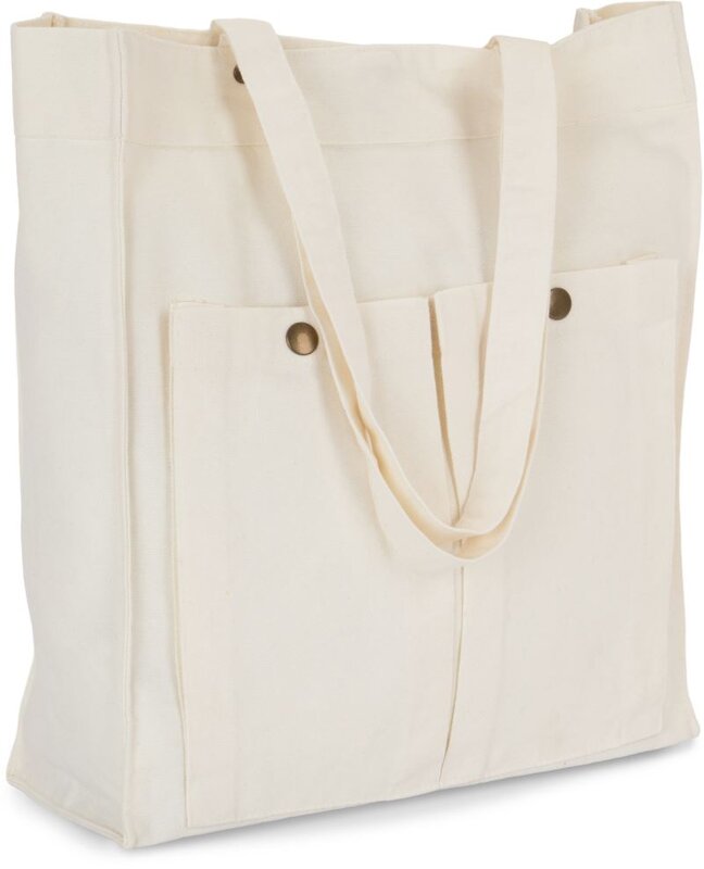 Bavlněná taška přes rameno se sepraným vzhledem a certifikovanou veganskou výrobou, ideální pro firemní potisk a výšivku. Vyrobena ze 100% bavlny (310g/m²), nabízí stabilní dno, magnetické zapínání a dvě přední kapsy s patentkou. Velká plocha na tašce poskytuje dostatek prostoru pro umístění vašeho loga.
