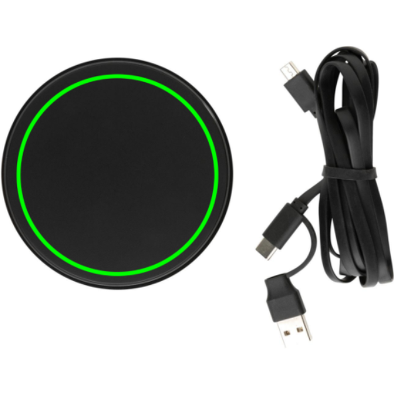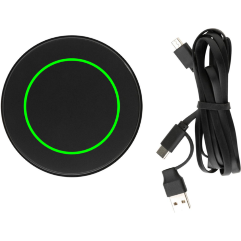 Bezdrátová nabíječka s výkonem 10W a duálním napájecím kabelem (USB A a USB C, které mají 1,5m). Produkt je vyrobený z recyklovaného ABS plastu s RCS certifikací, kabel z recyklovaného TPE. Celkový podíl recyklátu dle váhy produktu: 58 %. Kompatibilní se všemi zařízeními podporujícími Qi jako jsou nejnovější generace Android a iPhone 8 a výše. Vstup: 9V/1.5A; bezdrátový výstup: 9V/1.1A 10W. Produkt je vyroben kompletně bez PVC.