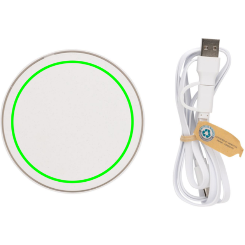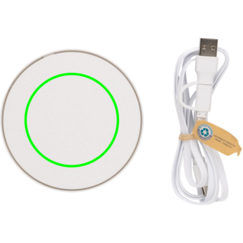 Bezdrátová nabíječka s výkonem 10W a duálním napájecím kabelem (USB A a USB C, které mají 1,5m). Produkt je vyrobený z recyklovaného ABS plastu s RCS certifikací, kabel z recyklovaného TPE. Celkový podíl recyklátu dle váhy produktu: 58 %. Kompatibilní se všemi zařízeními podporujícími Qi jako jsou nejnovější generace Android a iPhone 8 a výše. Vstup: 9V/1.5A; bezdrátový výstup: 9V/1.1A 10W. Produkt je vyroben kompletně bez PVC.