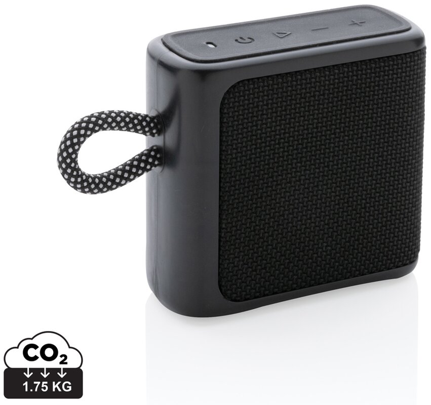 Voděodolný IPX6 reproduktor s výkonem 3W vyrobený z kombinace ABS a moderní tkaniny. Obsahuje baterii s kapacitou 1 200 mAh, která umožňuje poslech po dobu až 5h na jedno nabití, reproduktor se plně nabíjí již za 3h. Má BT 5.1 pro hladké bezdrátové připojení na vzdálenost až 10m, mikrofon pro možnost telefonování a také USB C nabíjecí kabel.