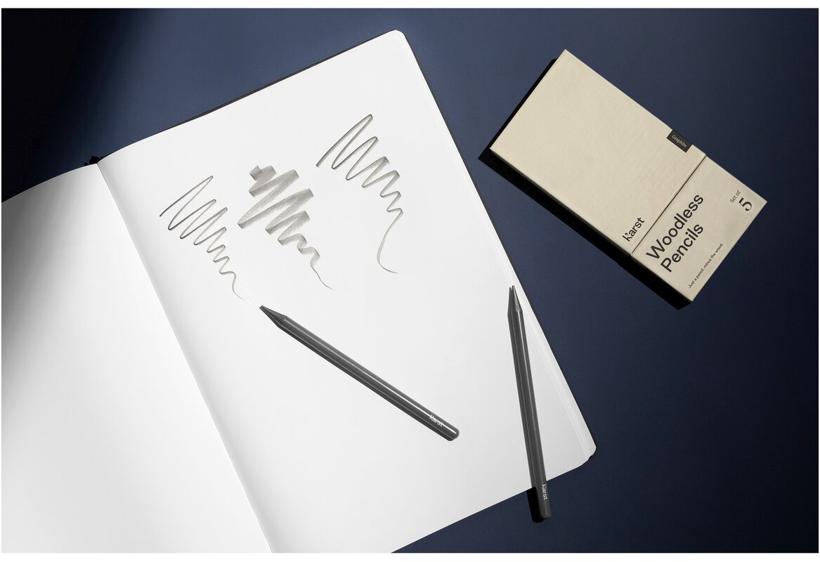 Bezdřevé grafitové tužky 2B v balení po 5 kusech K'arst® Šedá 025.412
