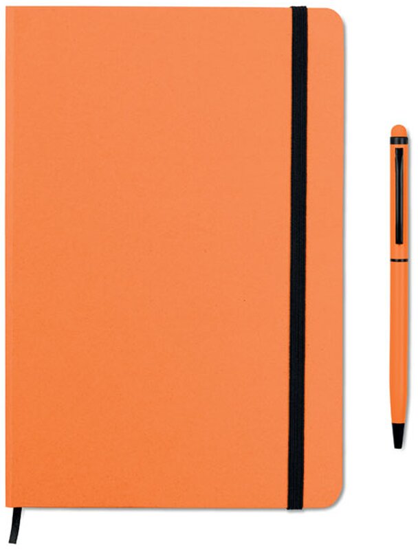 Zápisník s praktickou gumičkou a stylusem (modře píšící) v ladící barvě je hezký dárek pro vaše zaměstnace nebo obchodní klienty. Zápisník potiskneme vaším logem nebo jiným motivem, který vám rádi připravíme v našem grafickém studiu.
