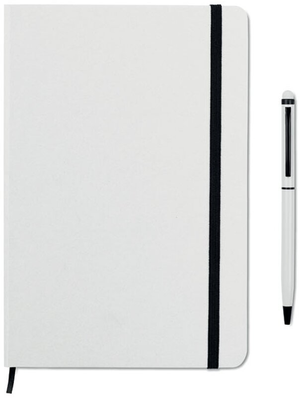 Zápisník s praktickou gumičkou a stylusem (modře píšící) v ladící barvě je hezký dárek pro vaše zaměstnace nebo obchodní klienty. Zápisník potiskneme vaším logem nebo jiným motivem, který vám rádi připravíme v našem grafickém studiu.