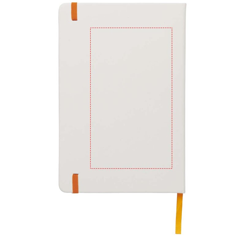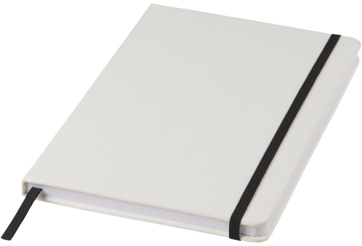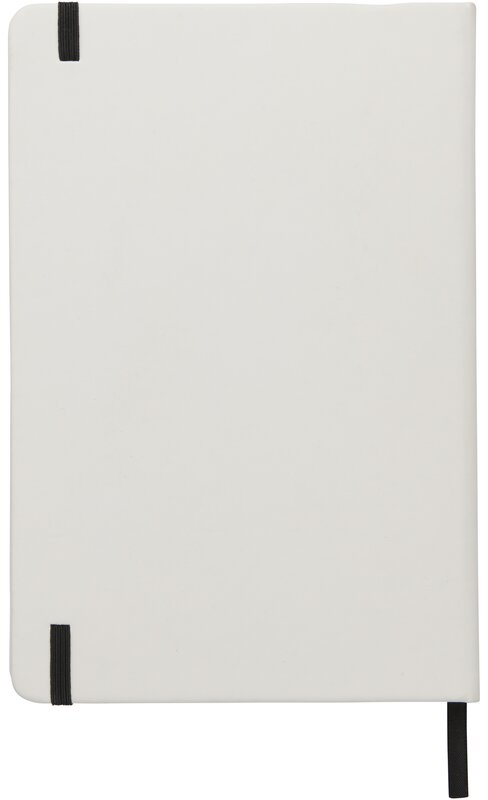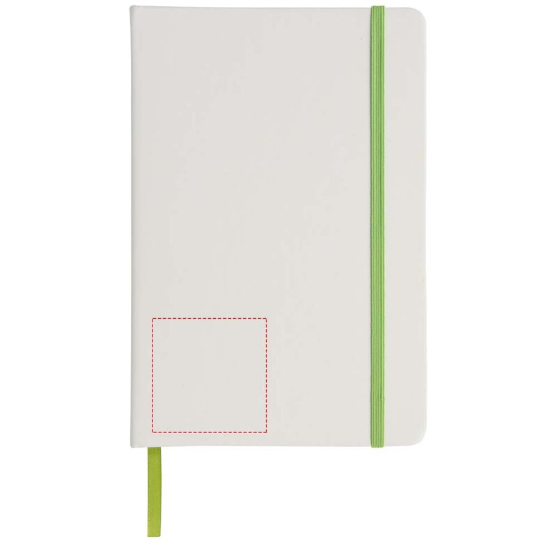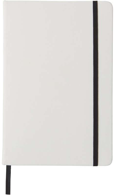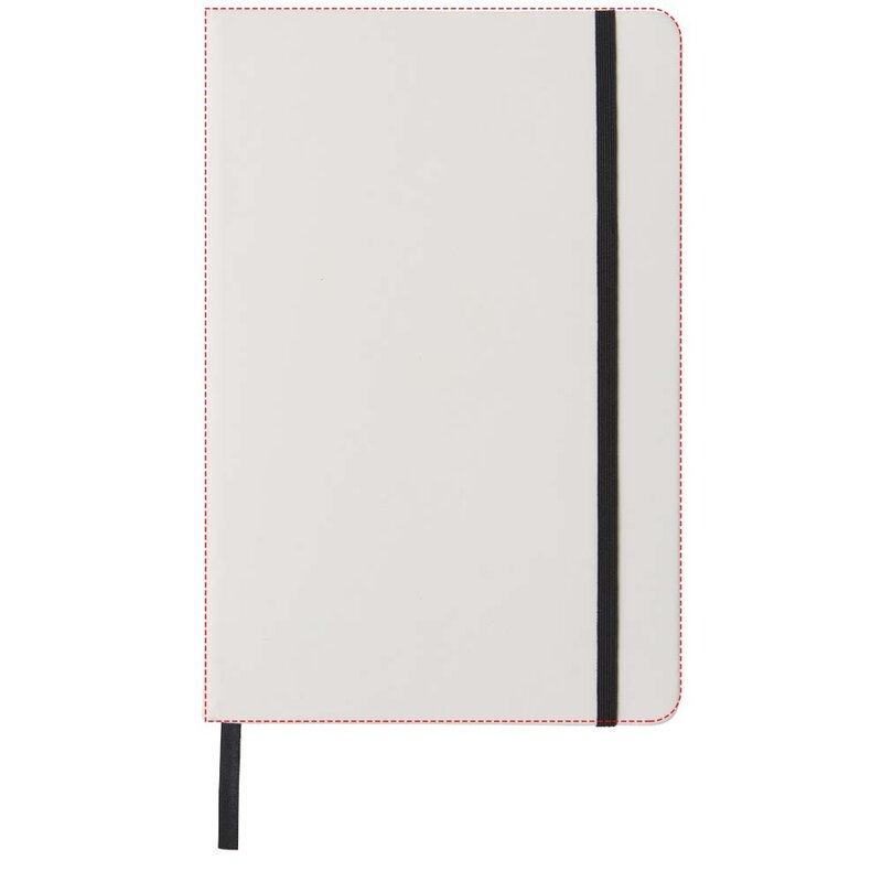 Bílý zápisník a barevnou gumičkou a stuhou uvnitř má 96 linkovaných listů pro vaše poznámky. Zápisník je vhodný pro aplikaci vašeho loga nebo jiného motivu i v plnobarevném provedení.