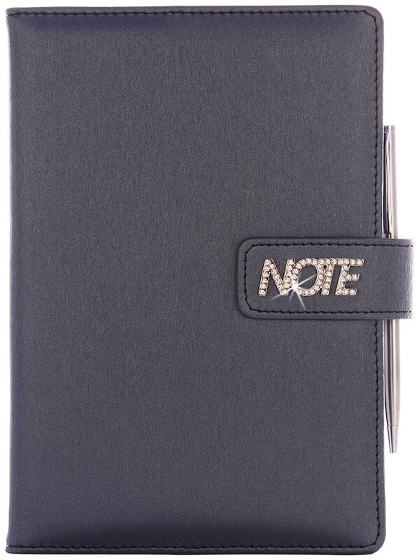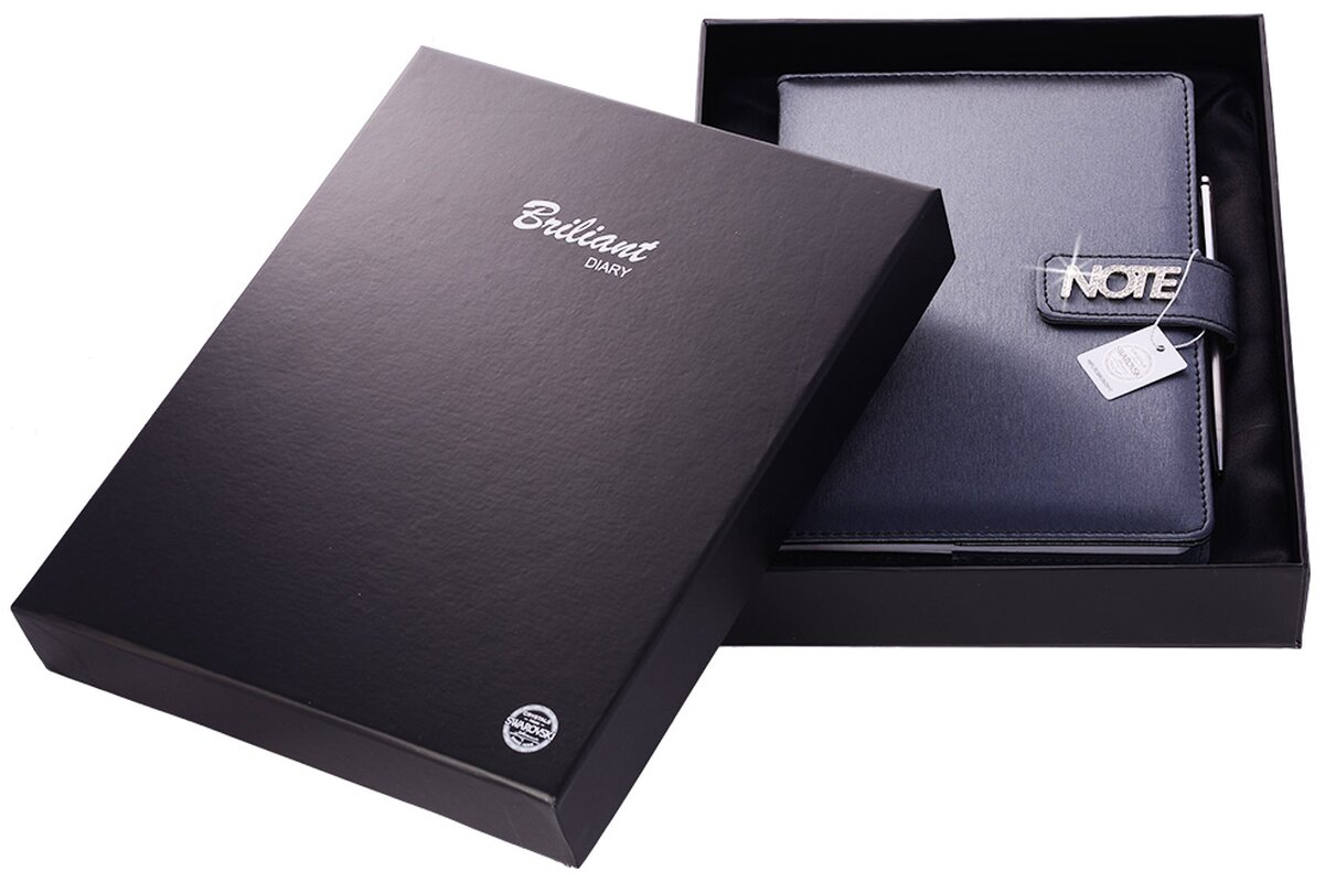 Zápisník Briliant se SWAROVSKI detaily je luxuním dárkem především pro ženy. Zápisník je koženkový s pěnovou výplní desek, má 144 čtverečkovaných listů a šitou vazbu. Součástí zápisníku je také propiska. Detail NOTE, který zdobí zavírání zápisníku je vyrobený z niklu a do něj jsou vsazeny kamínky SWAROVSKI. Celkem se jedná o 54 kamínků. Vše je zabaleno v dárkové krabičce.