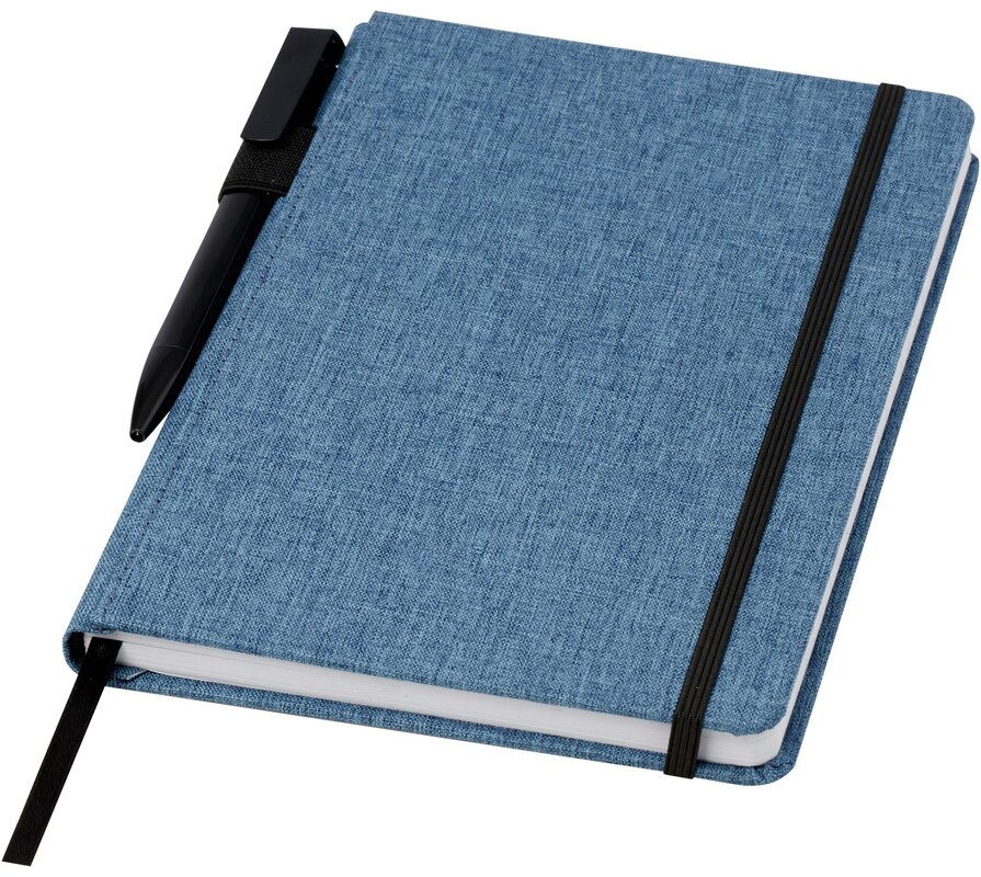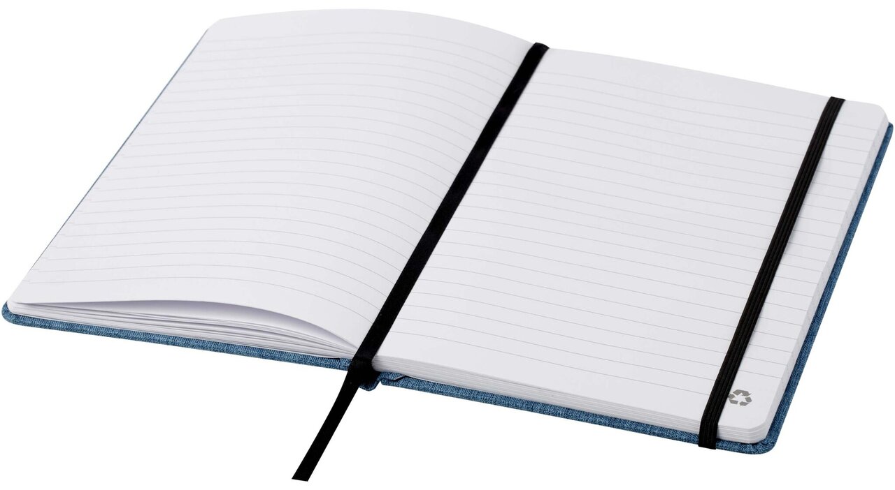Elegantní poznámkový blok A5 s obálkou z RPET tkaniny.
