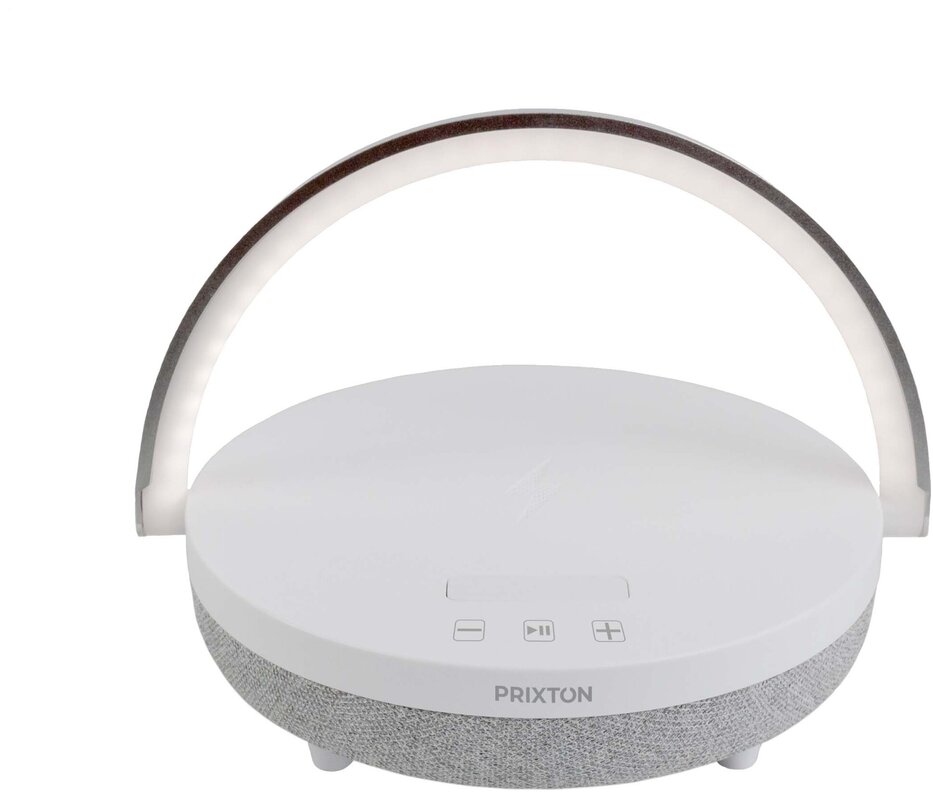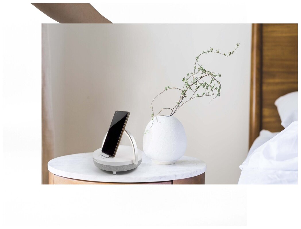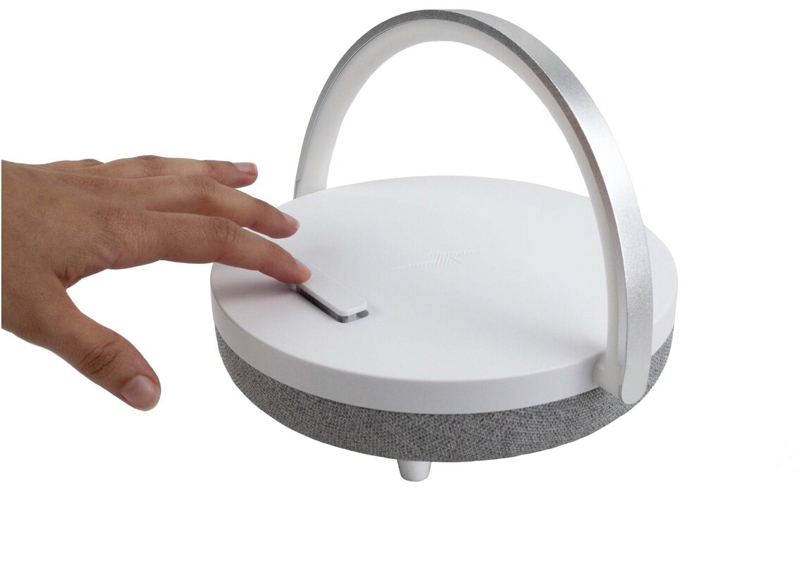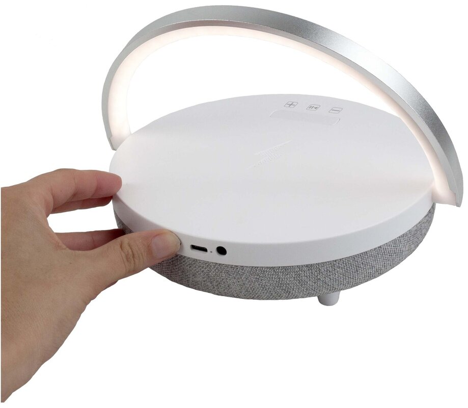 Multifunkční reproduktor slouží jako bezdrátový Bluetooth® speaker, základna pro bezdrátové nabíjení telefonu, LED lampa se 3 úrovněmi jasu a praktický držák na mobilní telefon. Užijte si oblíbenou hudbu a současně nabíjejte telefon bez kabelů. V balení naleznete nabíjecí kabel typu C a pomocný kabel.