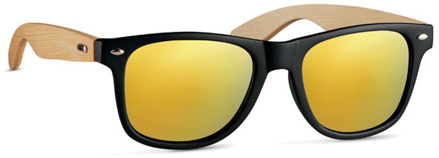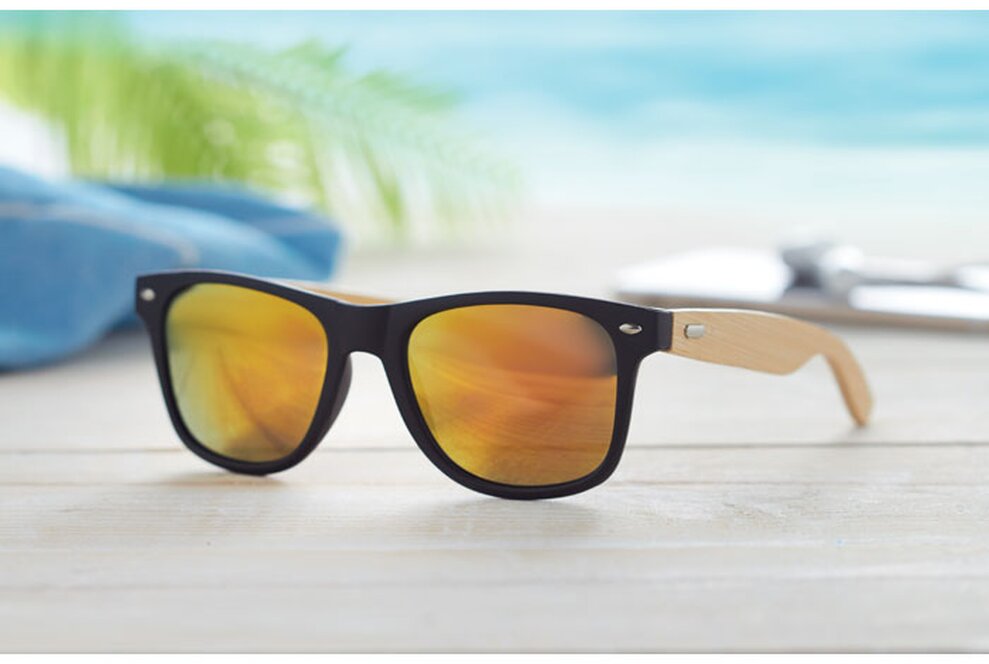 Sluneční brýle s nožičkami z bambusu a obroučkami se zrcadlovými skly.