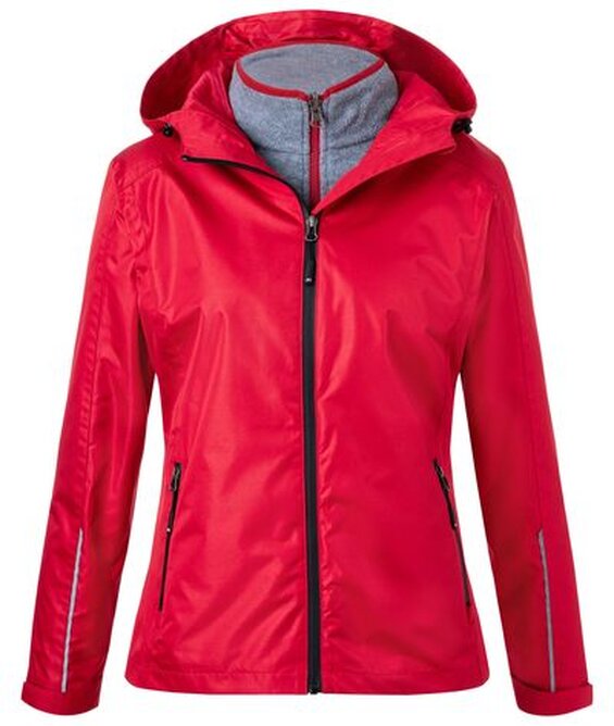 Funkční 3v1 bunda. Odepínatelná vnitřní fleecová bunda. Vnější bunda: vodě a větru odolná robustní tkanina (vodní sloupec 5 000 mm), paropropustná (5 000 g/m2/24h), odpuzuje vodu a špínu díky BIONIC-FINISH®ECO ochraně, podlepené švy, nastavitelná kapuce, 2 boční kapsy na zip, 1 vnitřní kapsa, reflexní prvky. Vnitřní fleecová bunda: melange vzhled, kontrastní okraje i zip, 2 boční kapsy. Balení 1/10 (ks v jednom sáčku / celkem ks v kartonu).