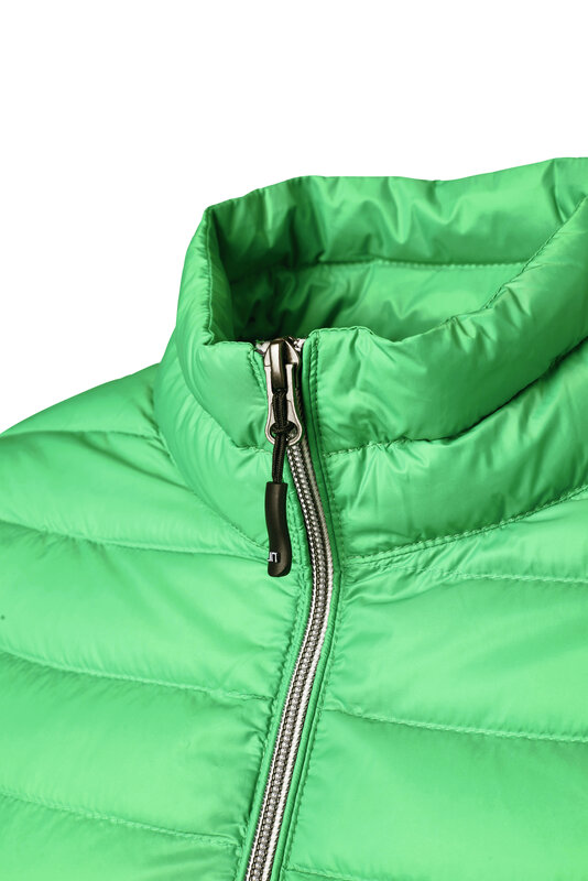 Lehká péřová bunda v klasickém designu, Lehká, vodě a větru odolná textilie, Podšívka a zipy v kontrastní barvě, Dvě boční kapsy na zip , 1/30 , (ks v jednom sáčku / celkem ks v kartonu).