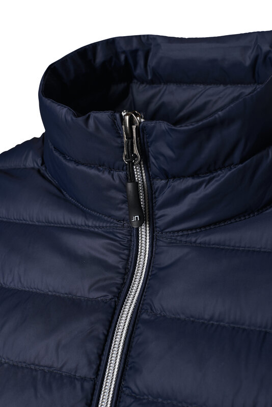 Lehká péřová bunda v klasickém designu, Lehká, vodě a větru odolná textilie, Podšívka a zipy v kontrastní barvě, Dvě boční kapsy na zip , 1/30 , (ks v jednom sáčku / celkem ks v kartonu).