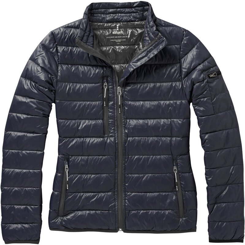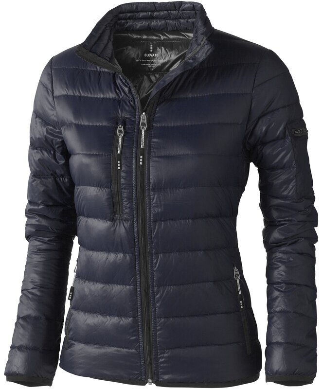 Dámská lehká péřová bunda SCOTIA. Tkanina odolná peří.Kapsy na ruce a náprsní kapsy na zip. Kapsa na rukávu se zipem vhodná pro dekoraci. Elastický lem manžetek a spodního lemu bundy. Pohodlná táhla zipů (s extra sadou v antracitové barvě). Vnitřní bouřková chlopeň s ochranou brady. Vodě odolné, prodyšné a větru odolné. Reflexní potisk loga na zádi. Lehká izolační péřovka. Tkanina, 100% nylon, 20D. 80% prachové peří a 20% peří. Hmotnost 115 g/m².
