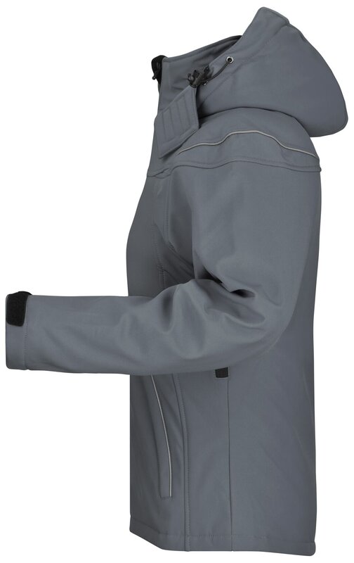 Módní dámská zimní softshellová bunda James & Nicholson pro muže. Vnější materiál: 95% polyester, 5% elastan. Podšívka: 100% polyester. 3 vrstvy funkční tkaniny s TPU membránou. Bunda je větru a vodě odolná (5.000 mm vodního sloupce), prodyšná. Součástí bundy je odnímatelná, polstrovaná a lemovaná kapuce, teplý fleecový límec, zip pod rukávy pro další ventilaci, reflexní lemování na ramenou a přední kapse, 2 přední kapsy, 1 náprsní kapsa, vnitřní náprsní kapsa a kapsa na mobil, 2pásmový zip, elastická šňůra se zarážkami na pase a kapuce. Balení: 1/10 (ks v jednom sáčku / celkem ks v kartonu).