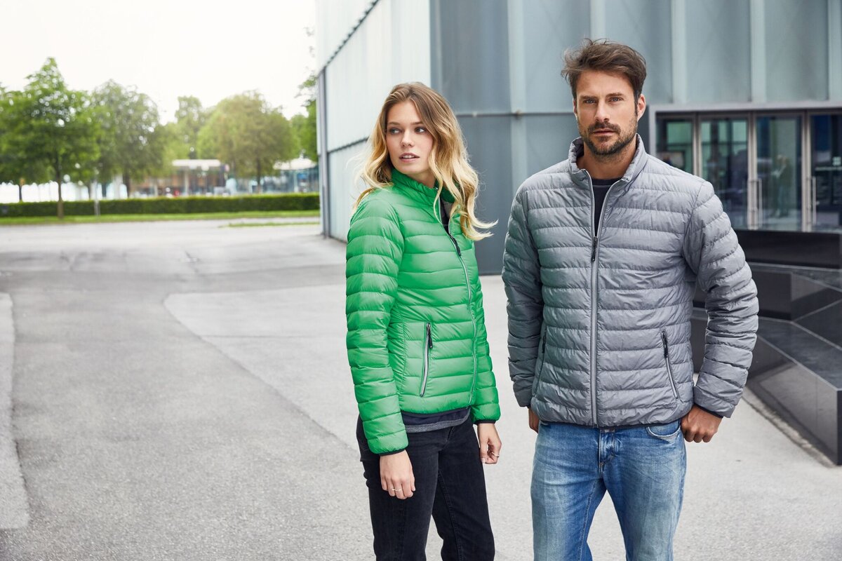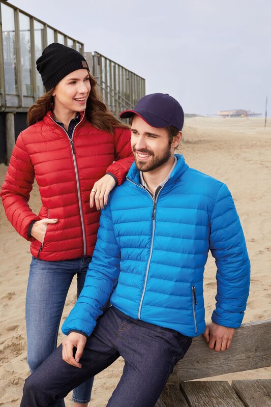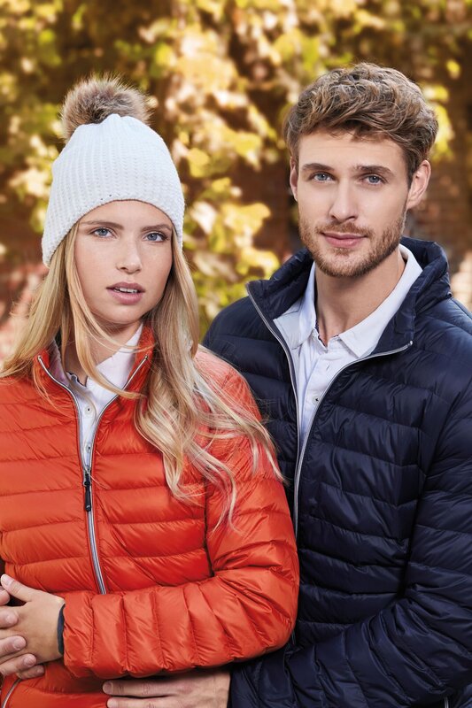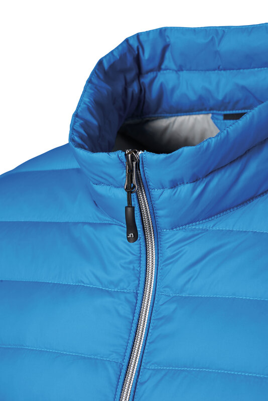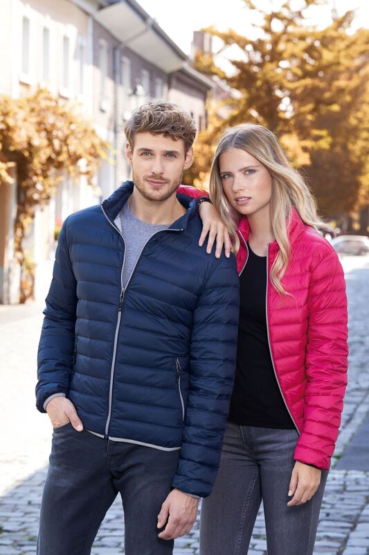 Lehká péřová bunda v klasickém designu, Lehká, vodě a větru odolná textilie, Podšívka a zipy v kontrastní barvě, Dvě boční kapsy na zip , 1/30 , (ks v jednom sáčku / celkem ks v kartonu).