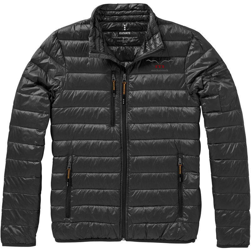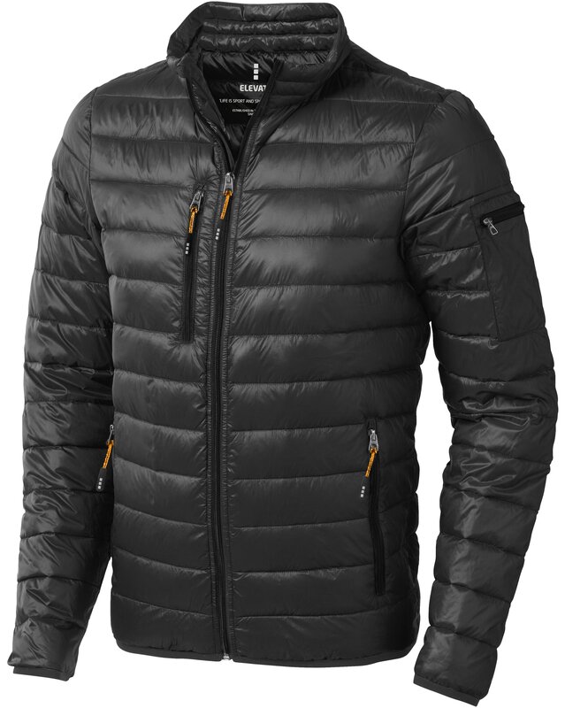 Lehká péřová bunda SCOTIA - tkanina odolná peří. Kapsy na ruce a náprsní kapsy na zip. Kapsa na rukávu se zipem vhodná pro dekoraci. Elastický lem manžetek a spodního lemu bundy. Příjemná táhla zipů (s extra sadou v antracitové barvě). Vnitřní bouřková chlopeň s ochranou brady. Voděodolné, prodyšné a větru odolné. Reflexní potisk loga na zádi. Lehká izolační péřovka. Tkanina, 100% nylon, 20D. 80% prachové peří a 20% peří. Gramáž bundy je 115 g/m².