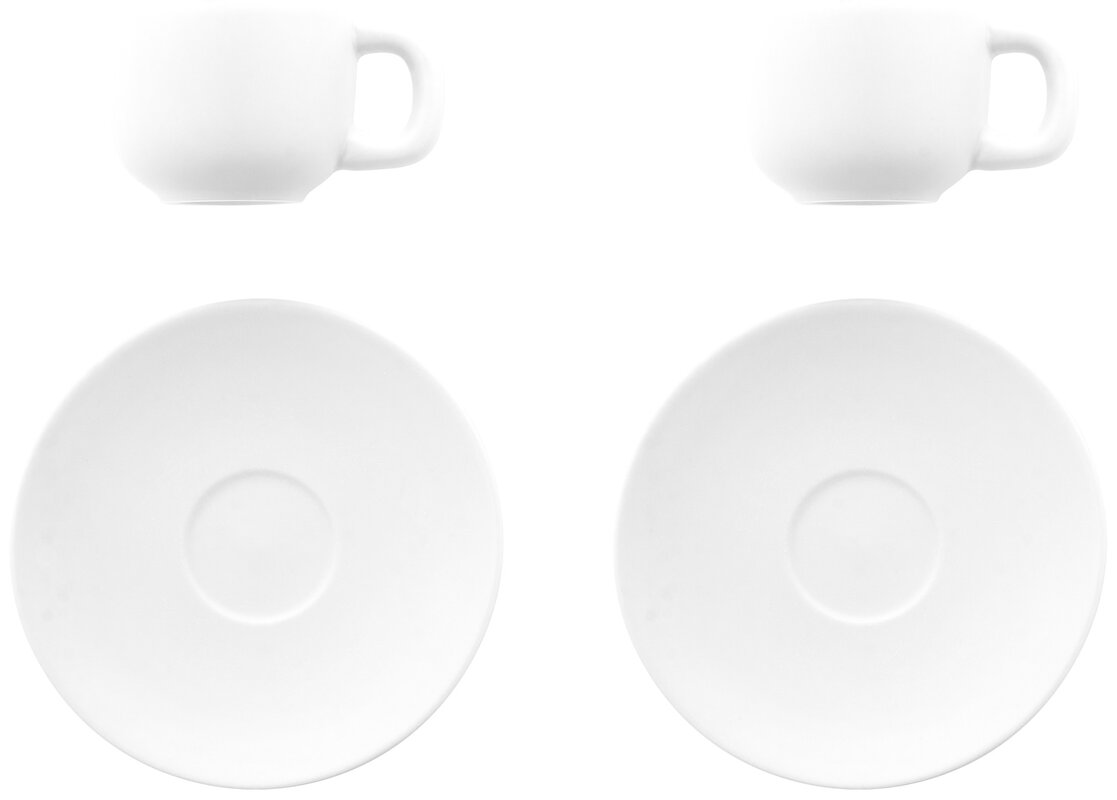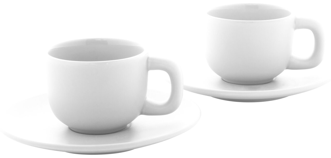 - 2 šálky a 2 podšálky – kompletní sada pro servírování espressa