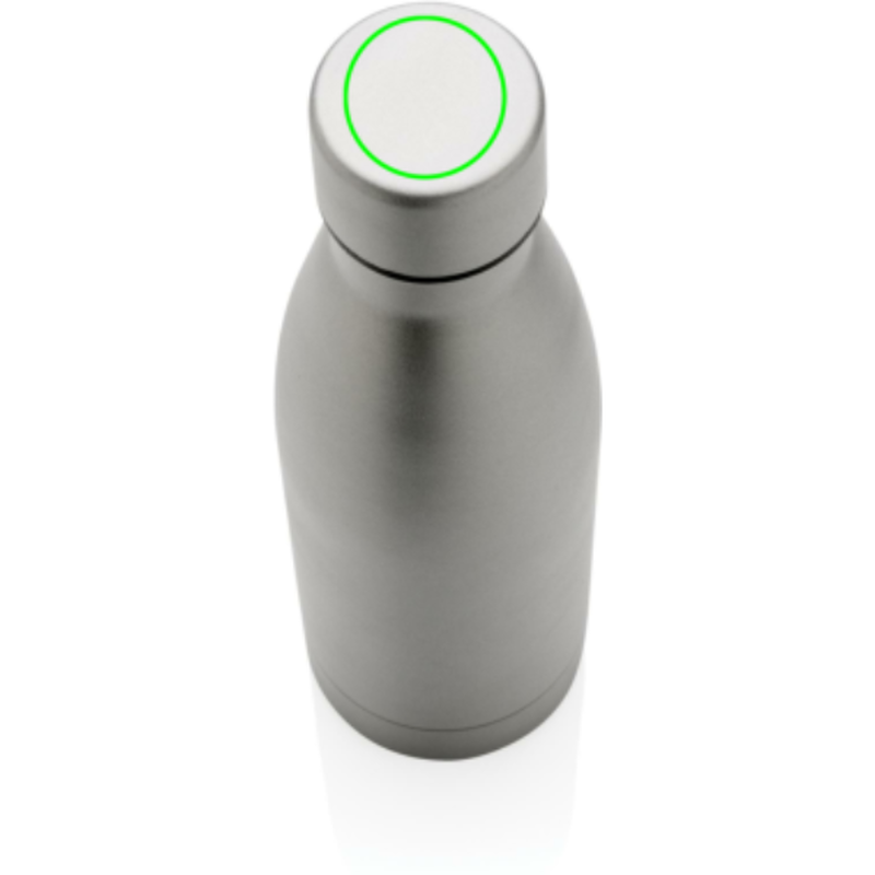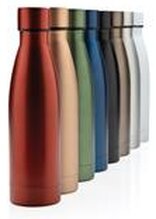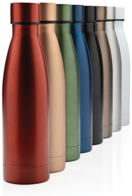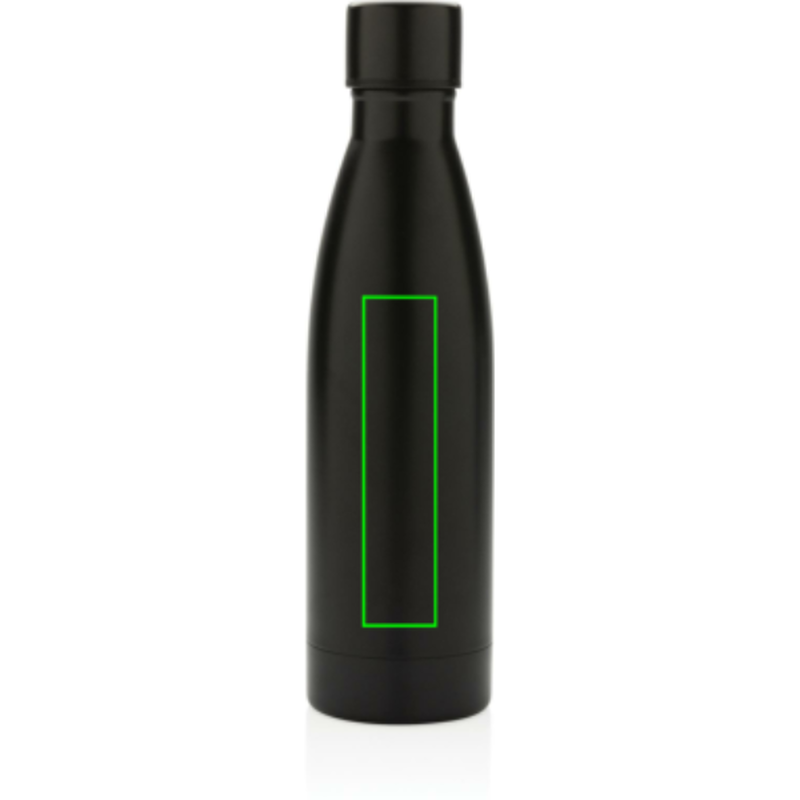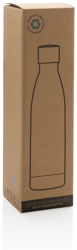 Nepropustná termo lahev s objemem 500ml, bezpečným šroubovacím uzávěrem a jednoduchým aktraktivním designem. Úzké tělo pasuje do většiny automobilových držáků na nápoje. Lahev uchovává nápoj horký po dobu až 5h a studený až 15h. Vyrobeno z RCS recyklované nerezavějící oceli. Podíl použitého recyklovaného materiálu vzhledem k celkové váze produktu: 85 %. Bez BPA. Produkt je zabalen v FSC kraftové krabičce.
