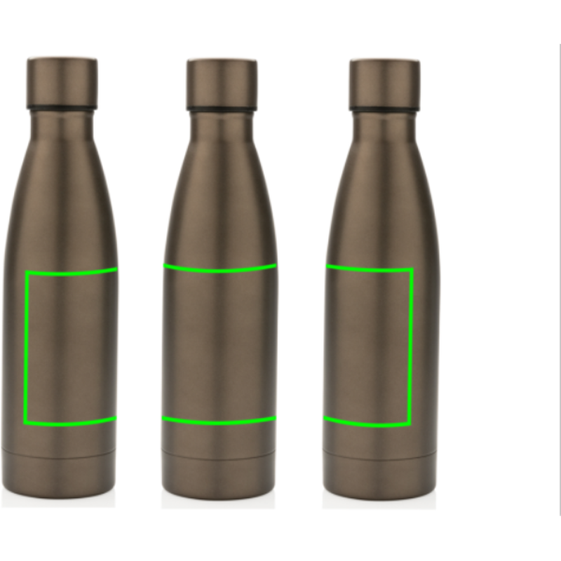 Nepropustná termo lahev s objemem 500ml, bezpečným šroubovacím uzávěrem a jednoduchým aktraktivním designem. Úzké tělo pasuje do většiny automobilových držáků na nápoje. Lahev uchovává nápoj horký po dobu až 5h a studený až 15h. Vyrobeno z RCS recyklované nerezavějící oceli. Podíl použitého recyklovaného materiálu vzhledem k celkové váze produktu: 85 %. Bez BPA. Produkt je zabalen v FSC kraftové krabičce.