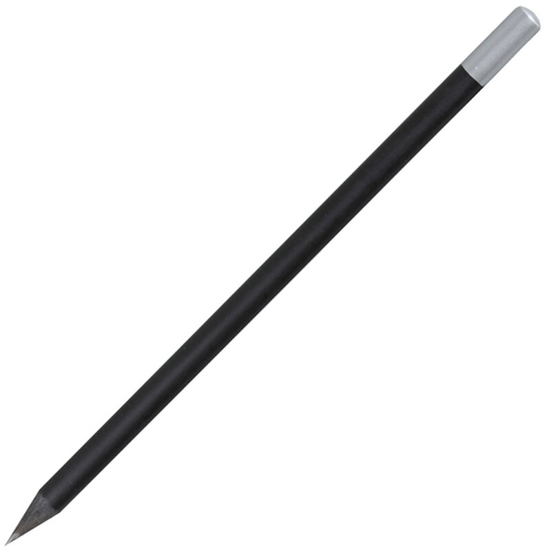 Obyčejná tužka v černé barvě s matnou povrchovou úpravou a stříbrnou špičkou. Ořezaná.