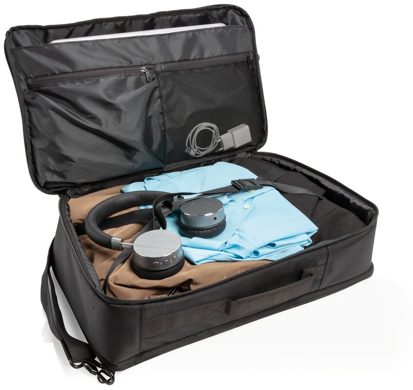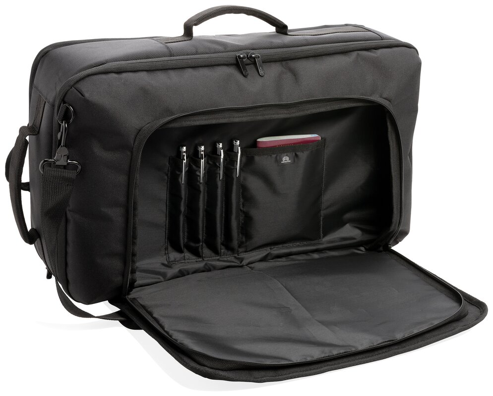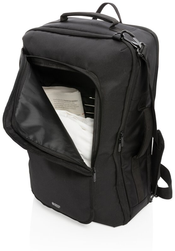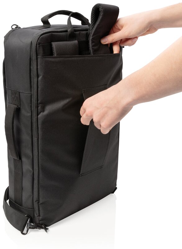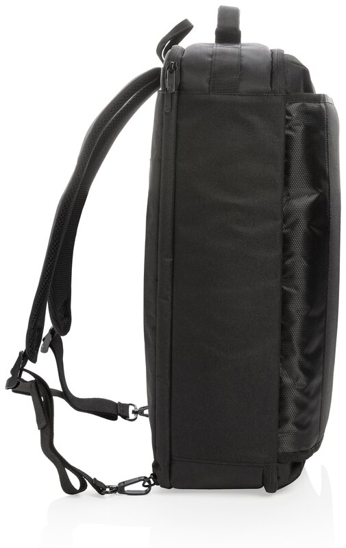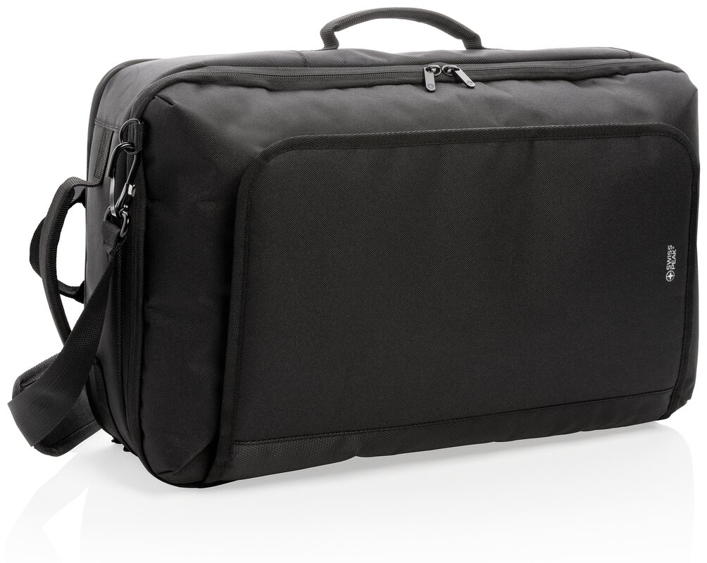 Objevte svět možností s originálním konvertibilním batohem Swiss Peak. Funkční organizace a business funkce vám zajistí, že se batoh stane každodenní volbou číslo jedna. Konvertibilita spočívá ve 4 možnostech nošení: 1. Batoh: připněte polstrované popruhy k bezpečnostním kroužkům a upravte si jejich délku dle potřeby. 2. Taška na rameno: odepněte a uschovejte popruhy na záda do příslušné kapsy. Poté připněte ramenní popruh. 3. Crossbody: po naplnění tašky upravte délku ramenního popruhu pro crossbody nošení umožňující pohodlnější a bezpečnější nošení. 4. Brašna: odepněte a uschovejte popruhy. Nošení v ruce je možné vrchním či postranním úchopem. Velký hlavní oddíl a přední kapsa na zip. Součástí jsou RFID kapsy a zadní popruh pro uchycení na madlo kufru. Bez PVC.