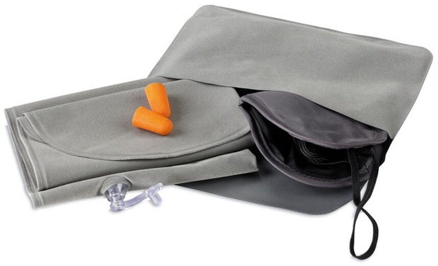 Sada pro pohodlnější dálkové cestování obsahuje nafukovací polštářek, masku na oči a špunty do uší. Sada je dodávaná v pouzdře.