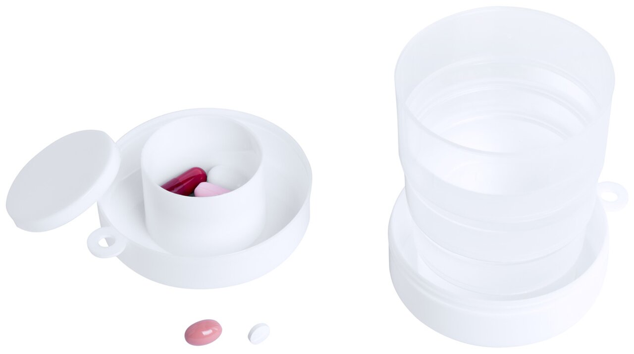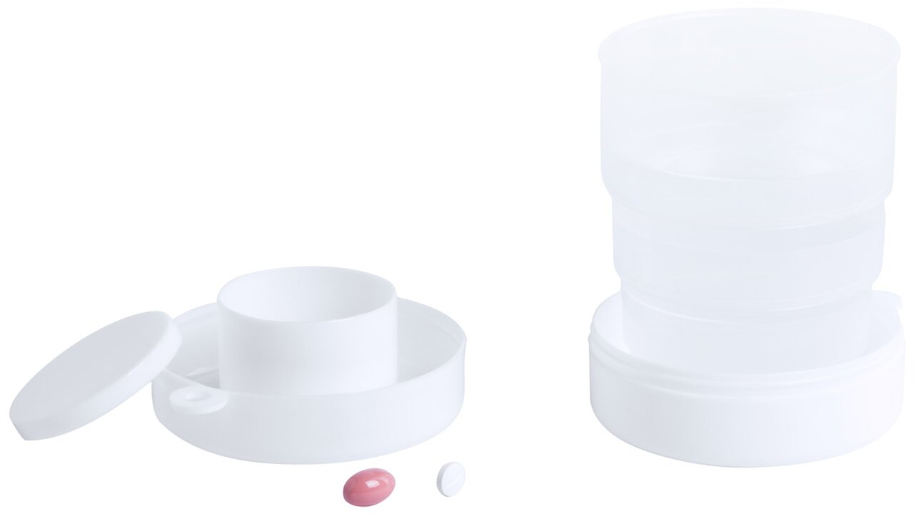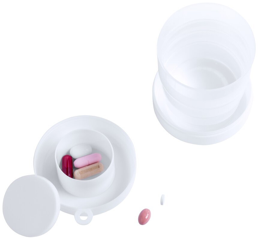 Cestovní skládací pohárek s boxem na pilulky Bílá 038.051
